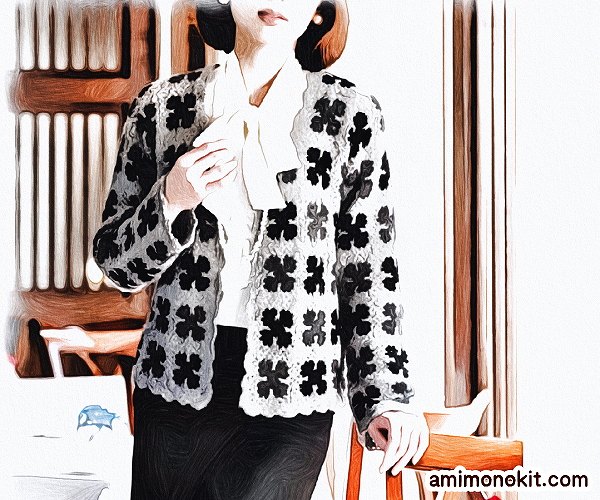 編み図 モチーフカーディガンの編み方 かぎ針 How to crochet a motif cardigan。
