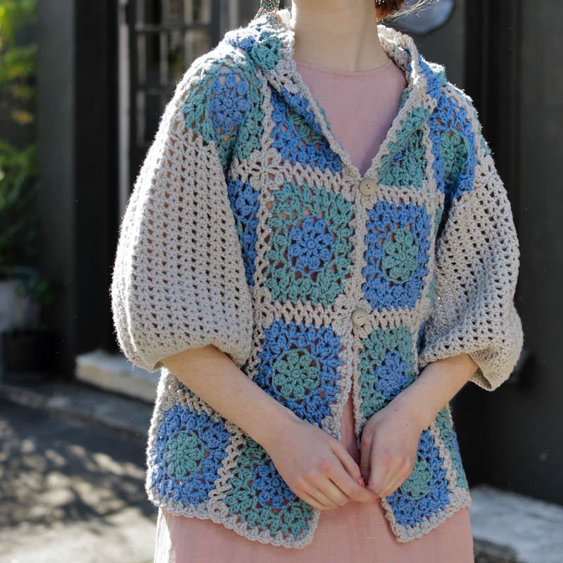 スクエアモチーフのカーディガン 編み図つきJul Knitting キットhus: フース。