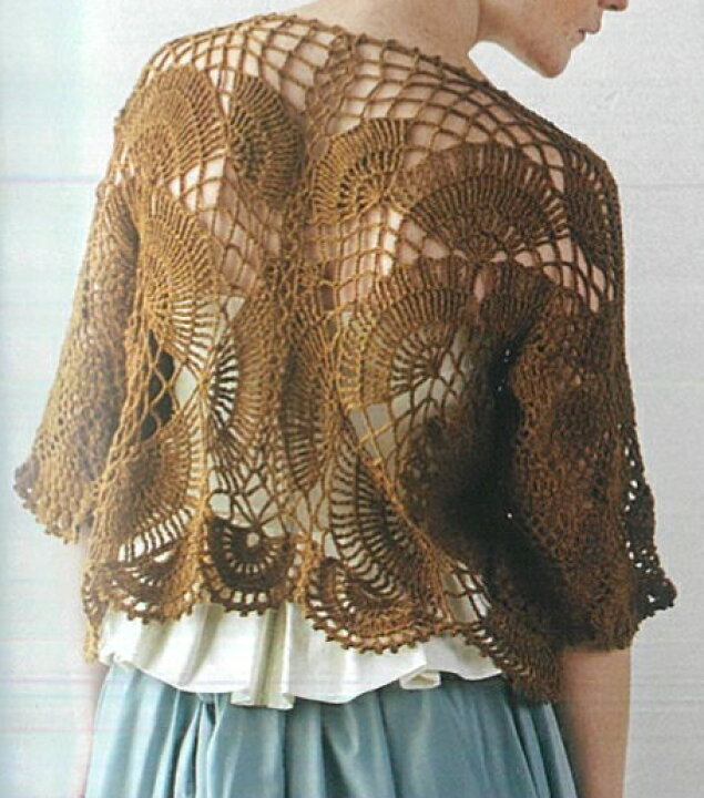 モチーフ編み 半袖 カーディガン 手編み かぎ編み。