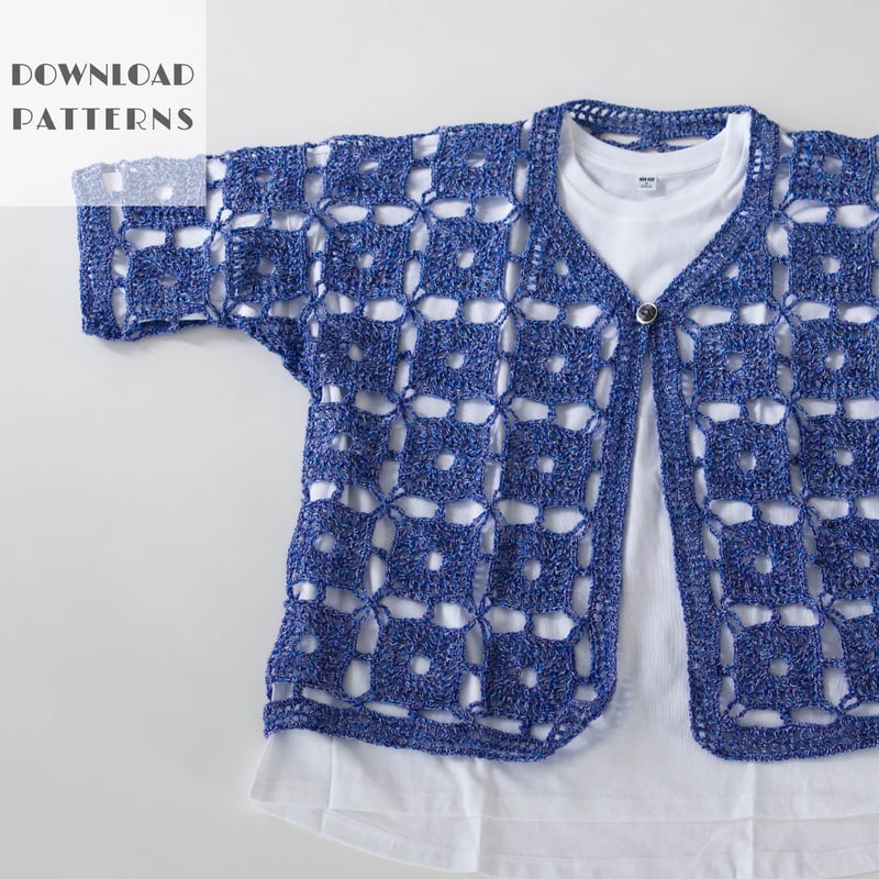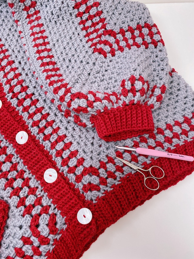 ダウンロード編み図:PDFデータかぎ針編み グラニースクエアカーディガンKiiT。