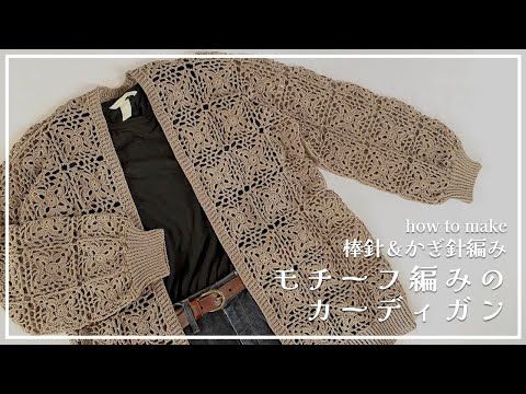 手編みカーディガンの編み方とモチーフの作り方ハンドメイド動画。