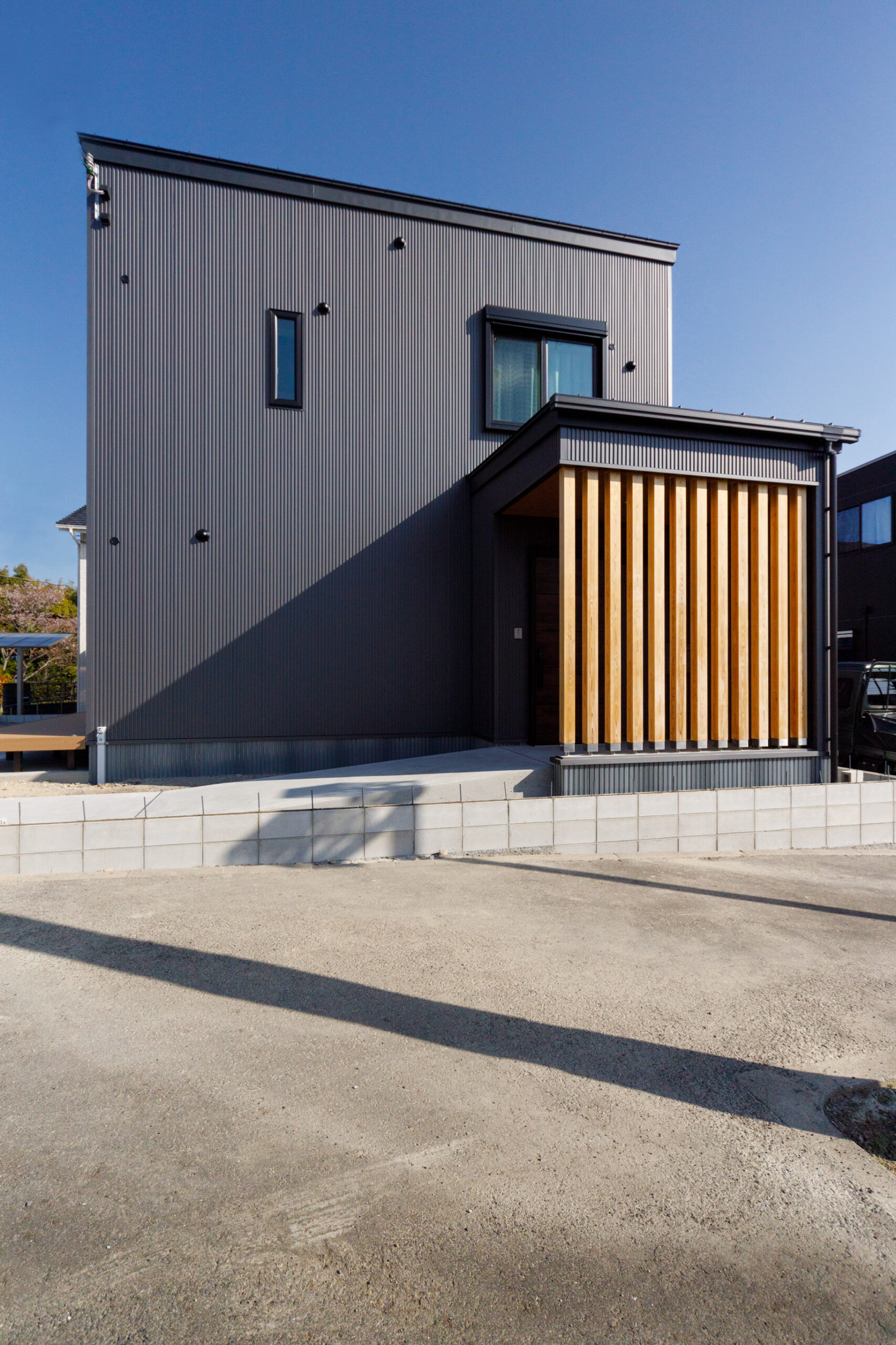 玄関目隠しがアクセントのシンプルモダンな家田辺市で新築・注文住宅を建てるならアートフルホーム 株式会社英興。