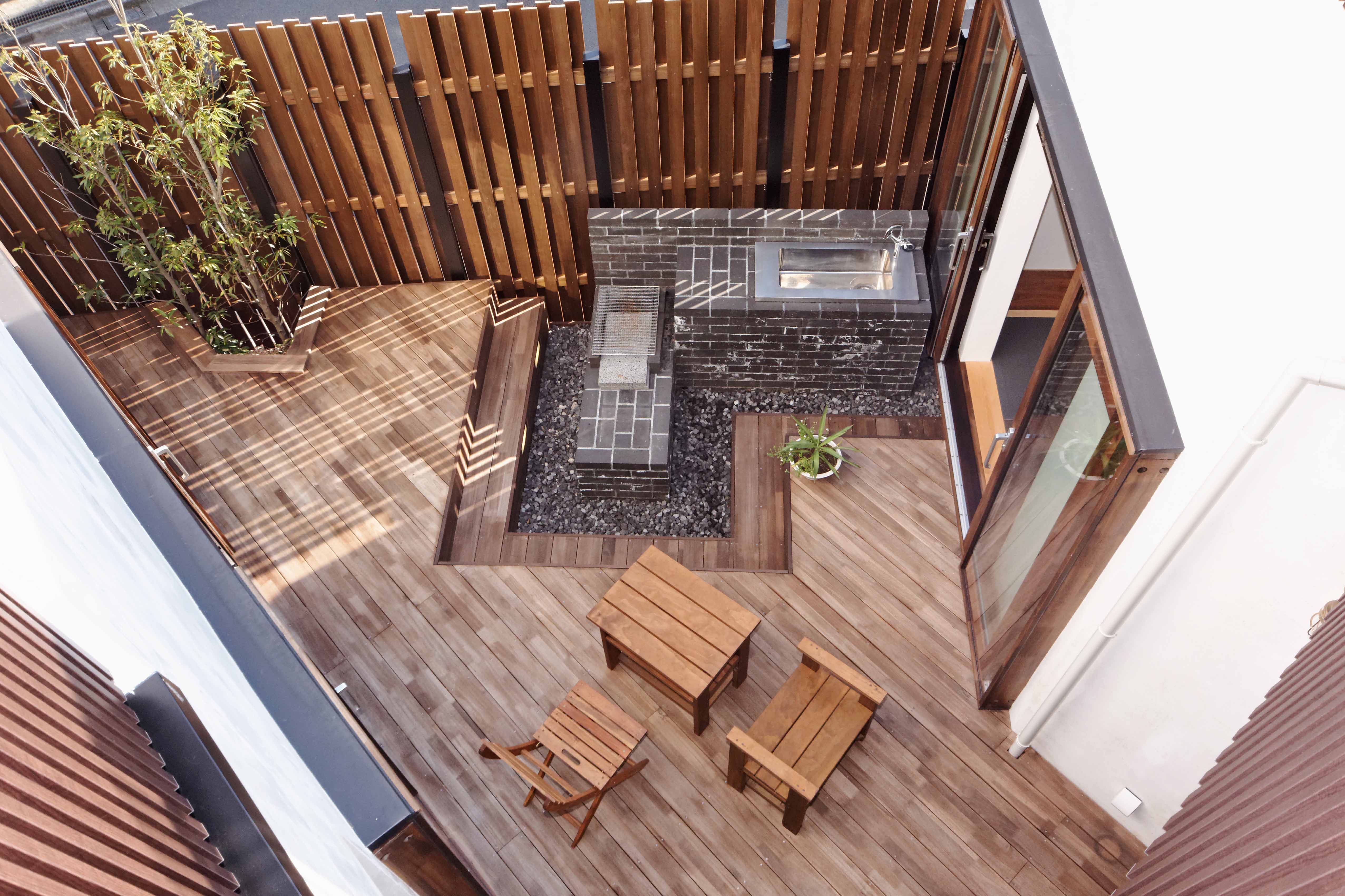 アウトドアリビング テラス・バルコニーで解放される時間重量木骨の家。