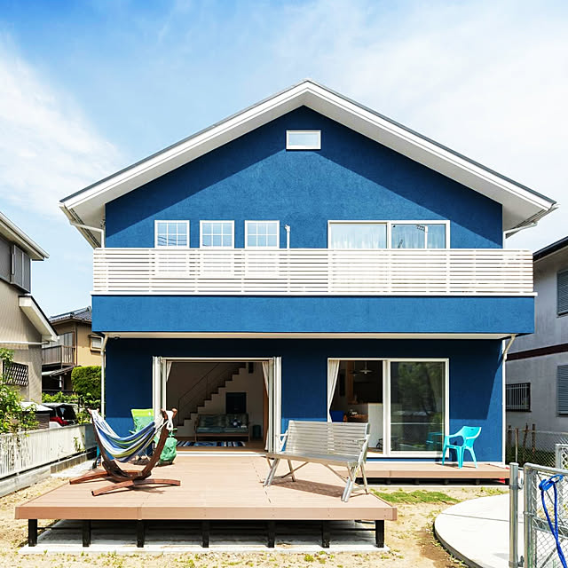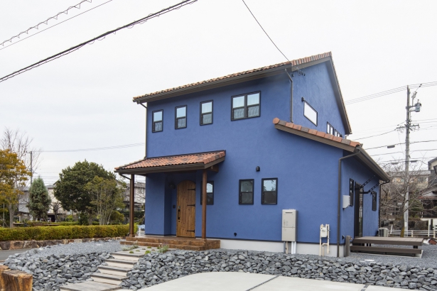 青い家のおしゃれな外観・内装の実例外壁・壁紙・家具などにブルーを使って海外スタイルにデザイン・性能、価格にこだわった注文住宅 千葉で家 を建てるならクレアカーサ。