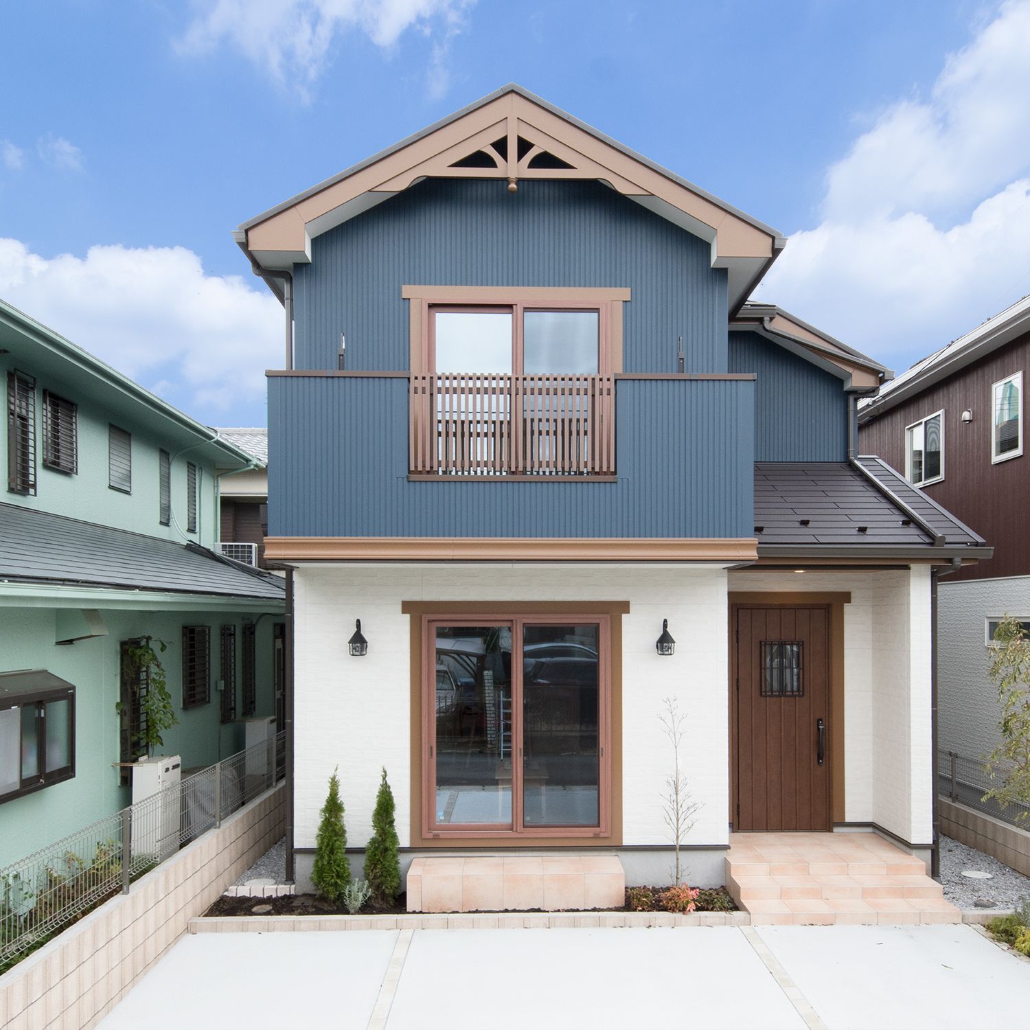 ブルーの外観が目を惹く!まるでアメリカンハウスのような家 約32坪 in四日市市の施工事例三重県で注文住宅を建てるならアート・宙。