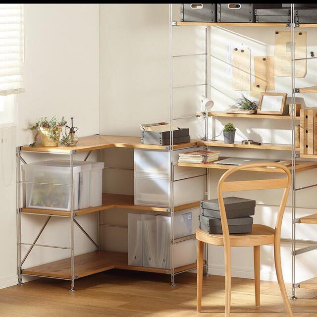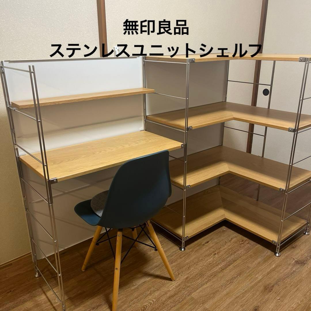 無印良品 ステンレスユニットシェルフ コーナーシェルフ デスクセット 棚・ラック・シェルフ。