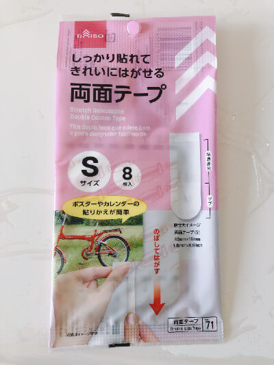 ダイソー「しっかり貼れてきれいにはがせる両面テープ」ポスター・写真を簡単はり替ええんウチ。