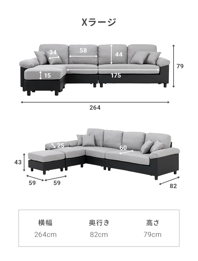 3人掛け 幅260cm カウチソファ L字 コーナーソファー モダンソファ搬入設置込み超大型商品74800060。