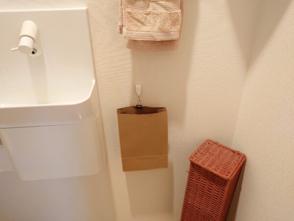 サニタリーボックスを置かないでトイレすっきり!使い捨て紙袋でストレス軽減。