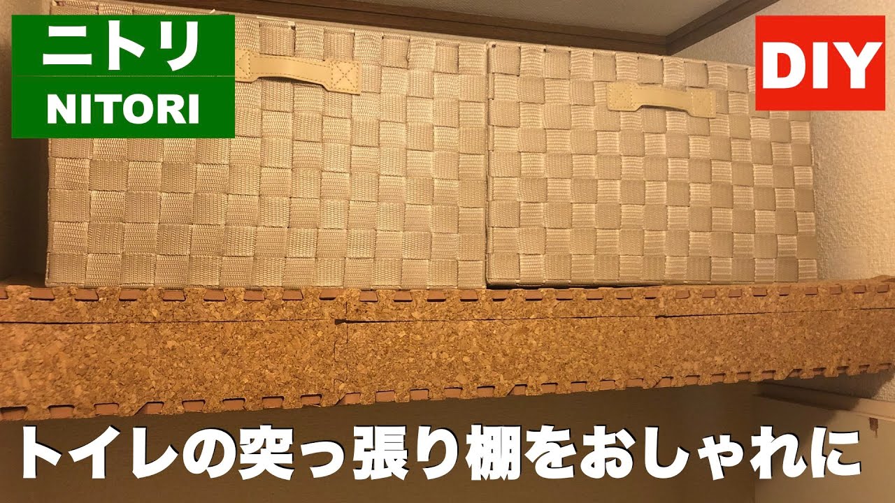 ニトリ トイレの突っ張り棚をコルクマット で目隠ししてオシャレに♪素人DIY。