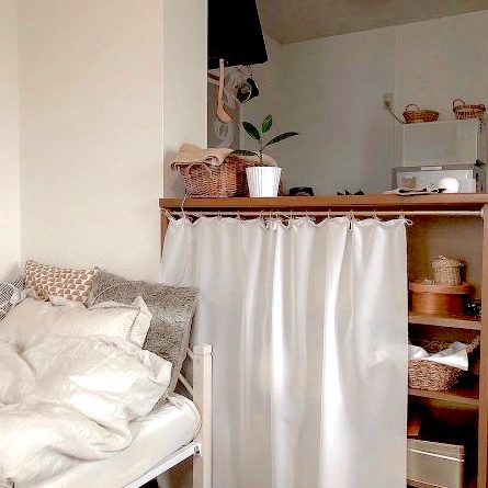 突っ張り棒×カーテンで簡単DIY。快適な暮らしを叶える目隠し&間仕切りアイデア活用例Sheage シェアージュ。