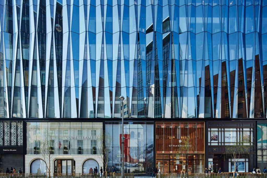 カーテンウォール傾斜バックパネルINSIGHTS株式会社三菱地所設計。