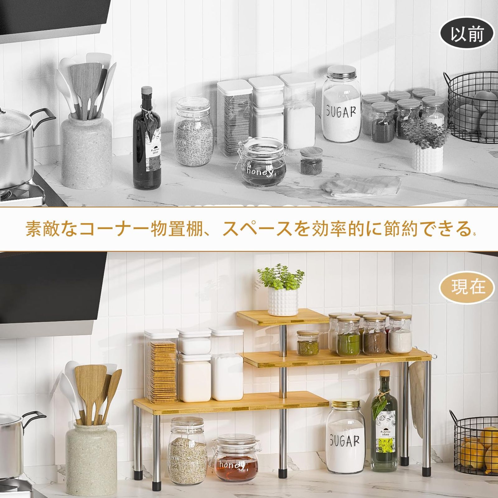 Amazon竹製キッチン収納棚 多機能カップ収納ラック コーヒーバー用 自立型スパイスオーガナイザーホルダー 組み立て簡単 ホームオフィス キッチンバスルーム用,67*25*39cm,B調味料・スパイスラック オンライン通販。