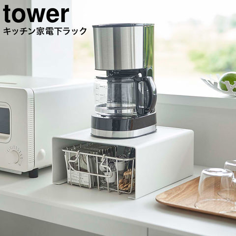 dショッピング tower キッチン家電下ラック タワー 山崎実業 6038 6039家電 ラック キッチン収納 電気ケトル ポット コーヒーメーカーコーヒーカップ コーヒー 台所収納 スチール棚 シンプル おしゃれ タワーシリーズホワイトカテゴリ:キッチン便利グッズの。