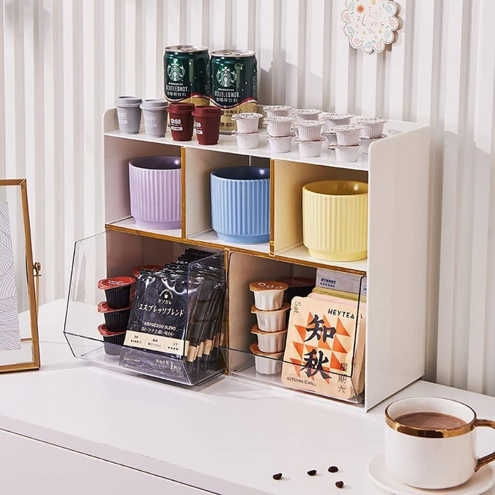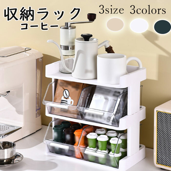 コーヒー収納ラック コーヒーグッズ収納 コーヒーカップ収納棚 デスク上収納 デスク上置棚 2 3 4段 収納ケース 引き出し 卓上整理棚 スティック コーヒー ティーバッグ 小物 収納 組み立て簡単 省スペース 家庭 喫茶店 ラウンジ 洗面所 tower前が開くキッチンカウンター。