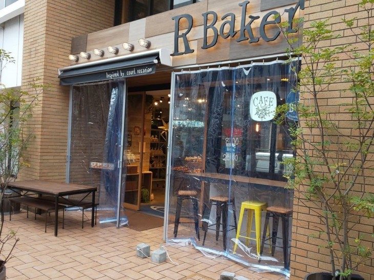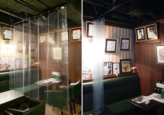 飲食店の入り口前にビニールカーテンを取り付け大阪市北区大阪のオーダーカーテン専門店メリーカーテン。