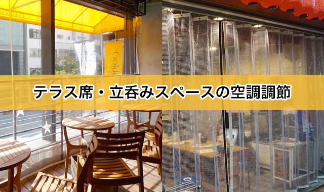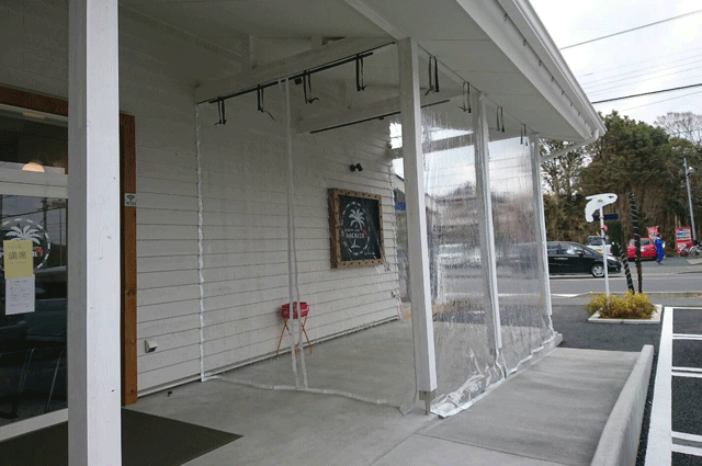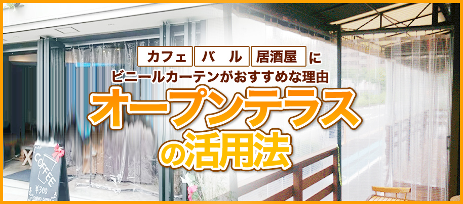 オープンカフェ出入口に防寒用透明ビニールカーテン業務用ビニールカーテン・カバー通販のビニテック。