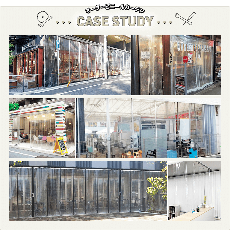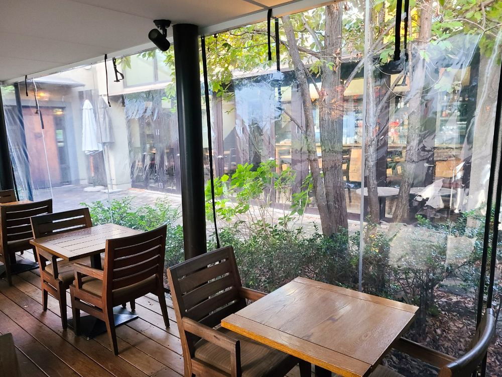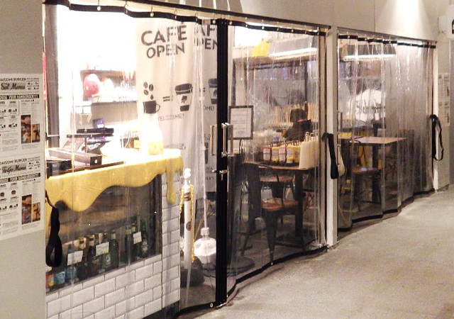 カフェテラスにビニールカーテン設置 - 神奈川・東京の間仕切りシート・ビニールカーテンの施工専門店川崎シート。