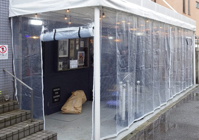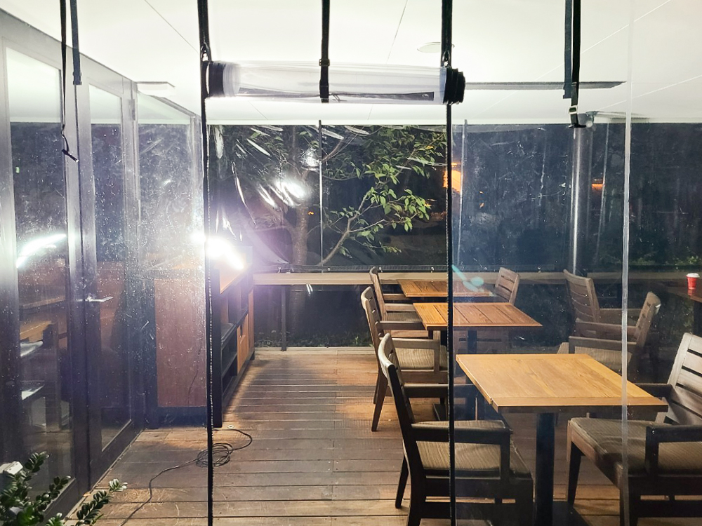 飲食店テラス席に防寒用ビニールカーテン業務用ビニールカーテン・カバー通販のビニテック。