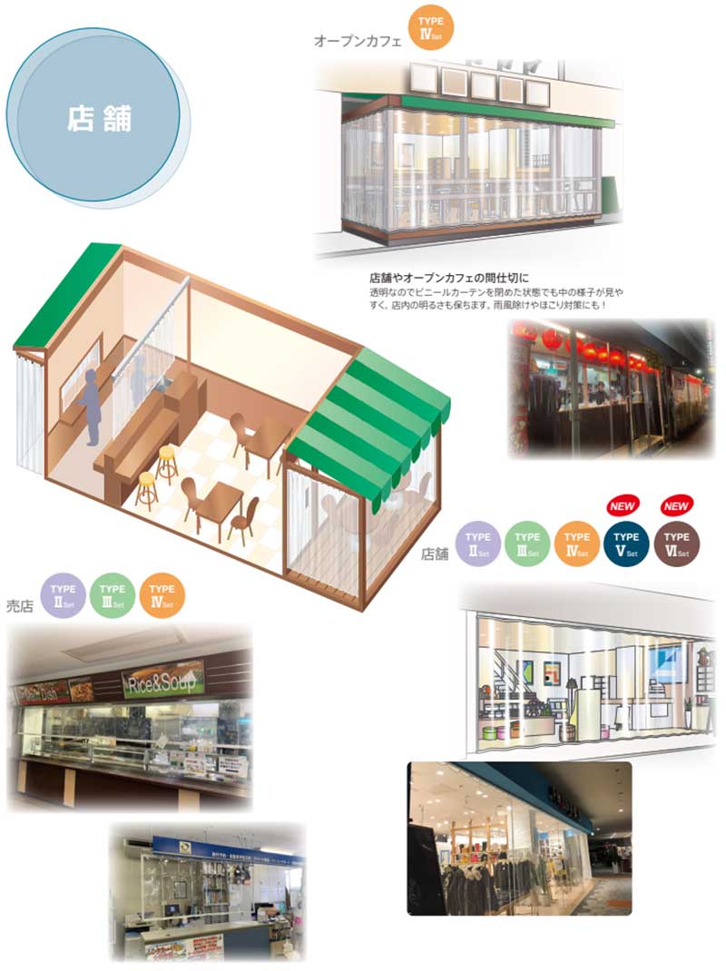 店舗の雨風除けに間仕切ビニールカーテン岡田装飾金物株式会社建材ナビ 建築材料・建築資材専門の検索サイト。