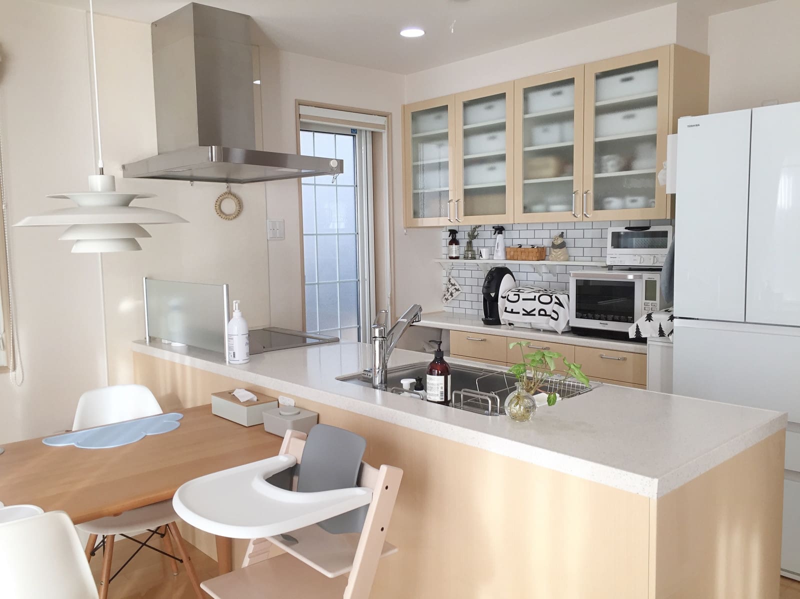 キッチンの選択も色々だよね キッチンパネルのセラールは うちは窓が大きくて通路幅が狭いのもあってオプションで追加せず 手前にずらすだけにしたよデフォルトだとクロスが少し出る施工になるってわが家は調理家電が多くて、カップボードは大きいのにしたかったけどめちゃくちゃ高額になるので自在棚で減額調整したよ〜一条工務店グランスマートスマートキッチンセラール。