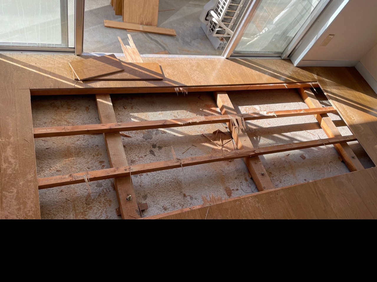 フローリング張替 床鳴り補修 配線入線追加 - 福岡市のリフォーム専門店-航工房-水廻りや床暖房が得意。