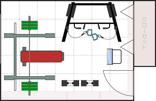 ホームジム。4.5畳と6畳の設置レイアウトホームジムで家トレ! 50代の筋トレ。