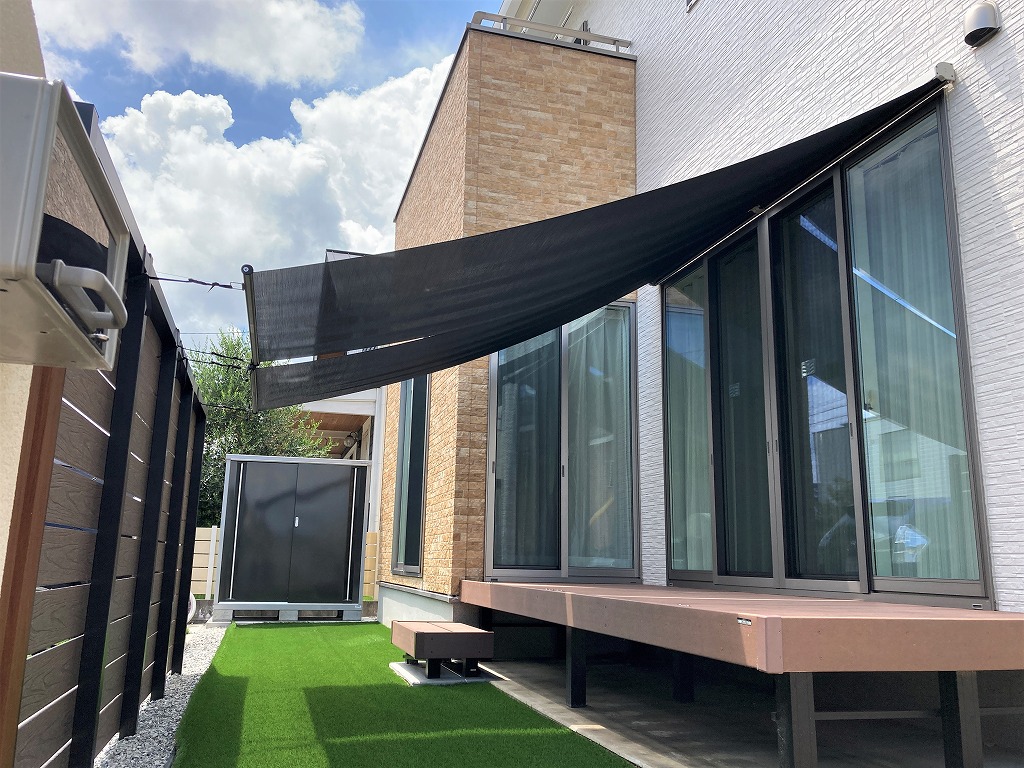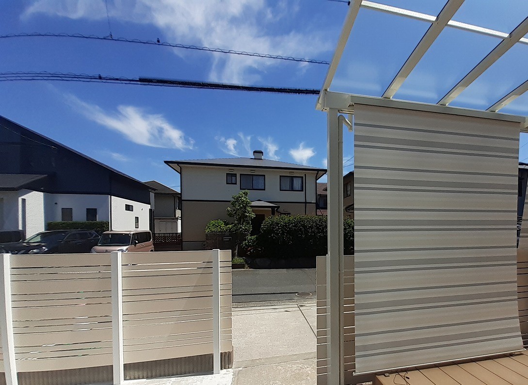 目隠しを兼ねた日除け シェード とプライベートを区切るフェンスのご紹介スタッフブログ 宗像店 エクステリア・ガーデン・外構・造園グランド工房。