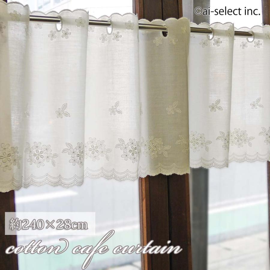 見た目 コットン に見えます 重ねて楽しめる カフェカーテン 約 240x70cm 送料無料 エンブロイダリー オフホワイト 花 刺繍 花柄 広窓セミロング 広窓用 おしゃれ 可愛い 綺麗 上品 縦長窓 喫茶店 店舗。