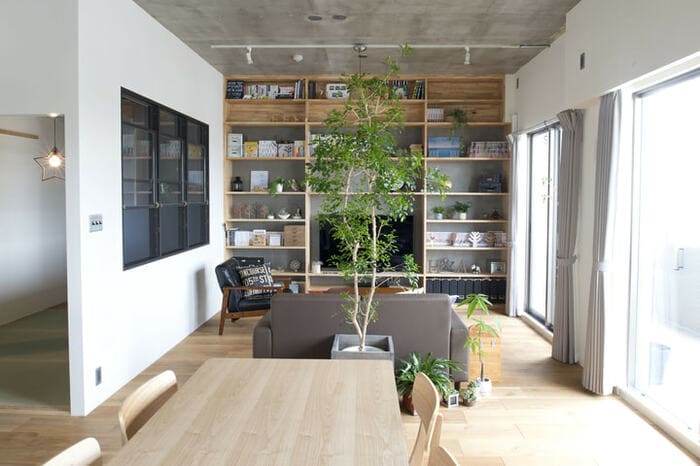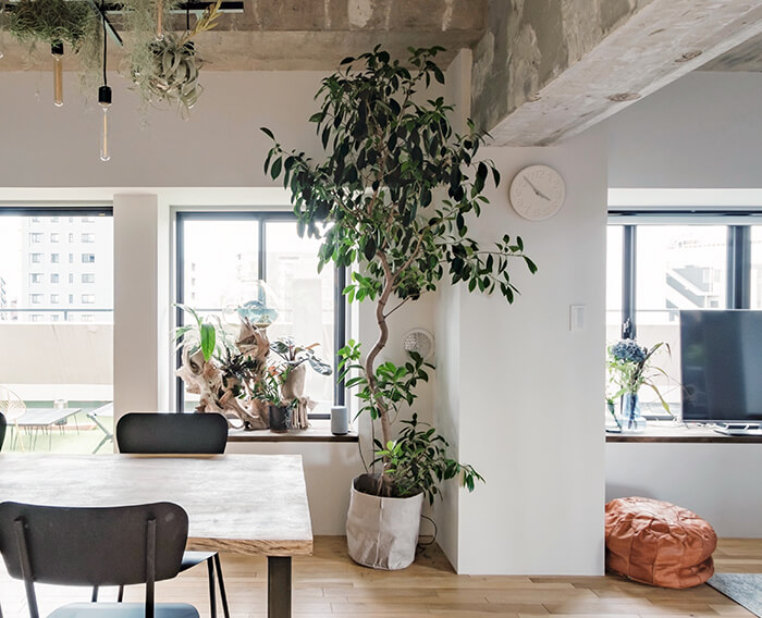 空間を豊かに彩る「シンボルツリー」リビングには存在感のある1本をLEE。