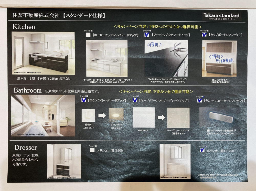 住友不動産 IC打ち合わせ1回目 ③キッチン・浴室・洗面室・トイレの設備仕様を確認していくさだはちぶろぐ。