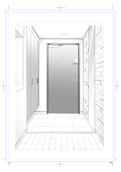 マンション 玄関ドアセットイラスト。