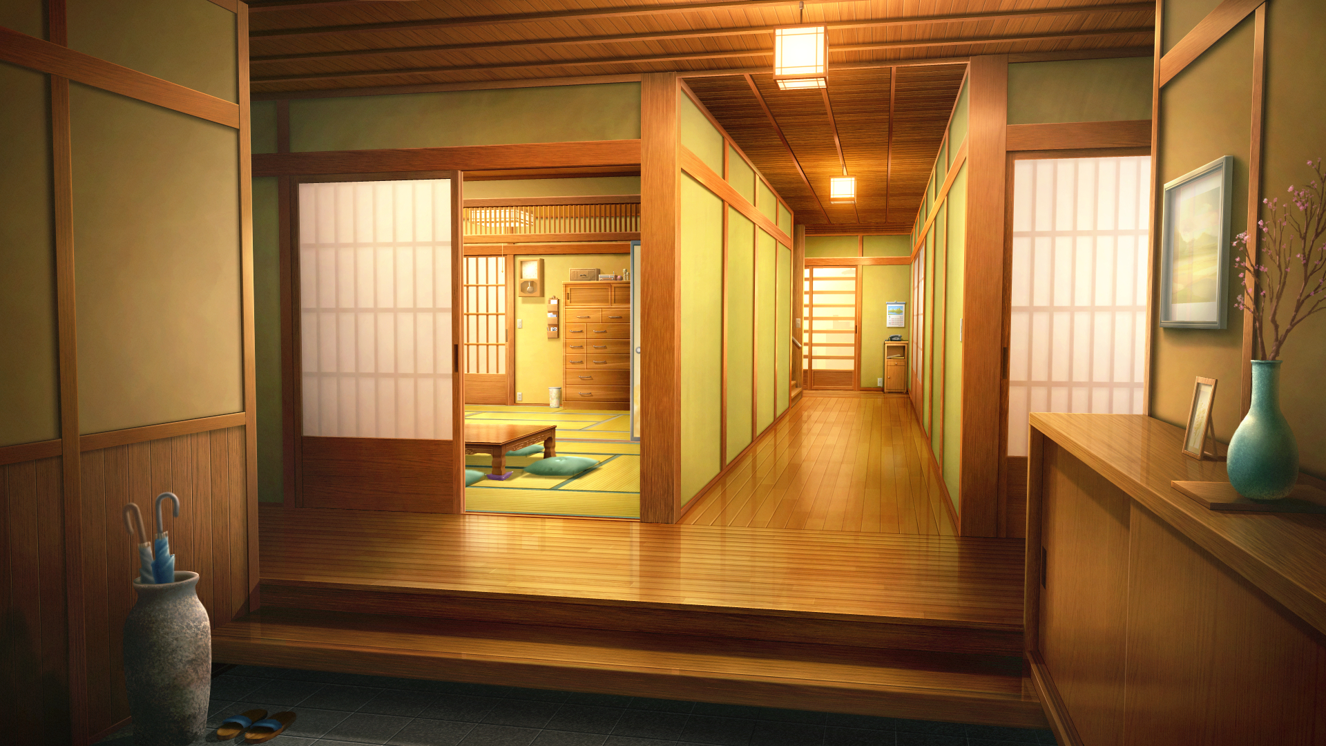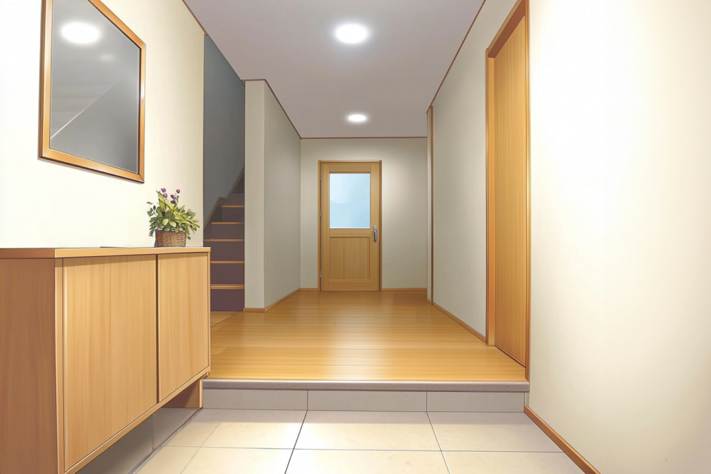 フリー素材 和風の家の玄関ホール 2枚背景イラストみんちりえ。