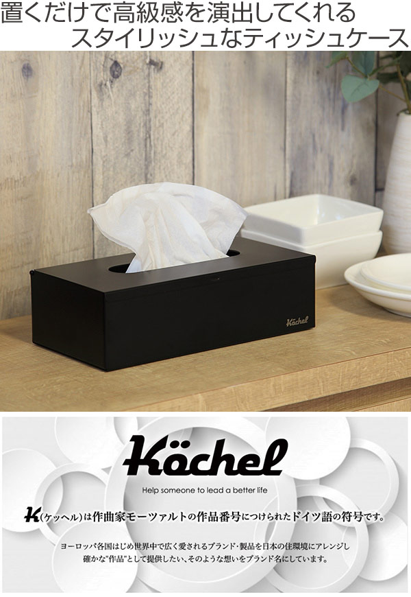 ティッシュケース Kochel ステンレス 壁掛け 卓上 ブラックケッヘル ティッシュカバー ティッシュ ケース ティッシュボックス 2Wayボックスティッシュケース ボックスティッシュカバー 壁 壁面 黒: リビングート ANA Mall店ANA Mallマイルが貯まる・使える。