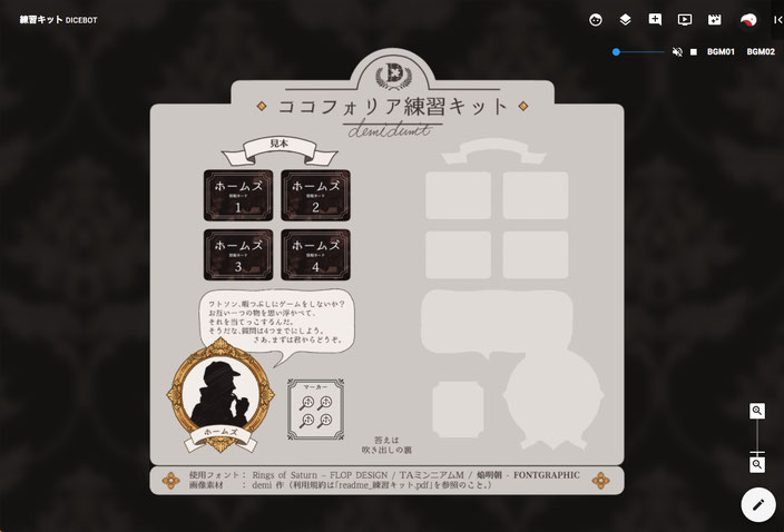ココフォリア等 オンセ部屋デザインのネタ帳・全体デザイン編 TRPG- 一畳ちょっとの二人部屋。