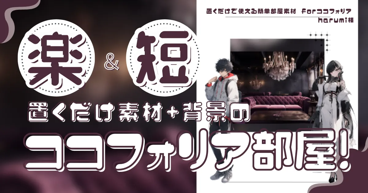 インスタントココフォリア部屋、部屋Zip素材まとめ、お部屋がドラックアンドドロップで何もしなくても完成できる!ZIP部屋の作り方、おすすめの ココフォリア部屋素材まとめサザノノポートフォリオ。
