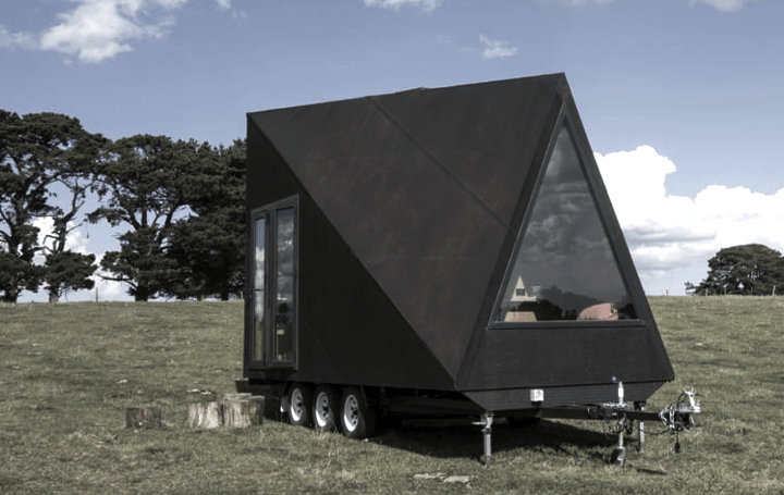 多面体デザインの広い空間。オーストラリアのトレーラーハウス「Base Cabin」 -casa。