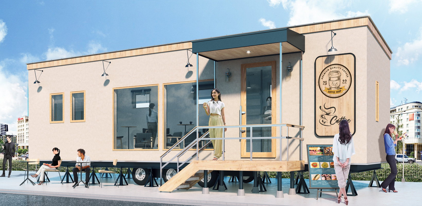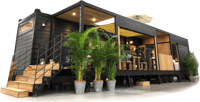 トレーラーハウス」イメージのデザイン事例 店舗デザイン.COM。