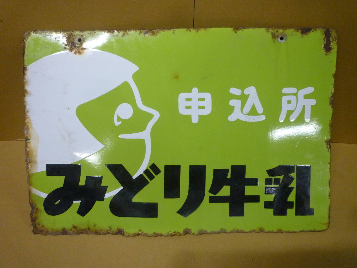 本物看板 牛乳 駄菓子屋 ホーロー看板 ガラス質 ペロペロ レトロ。