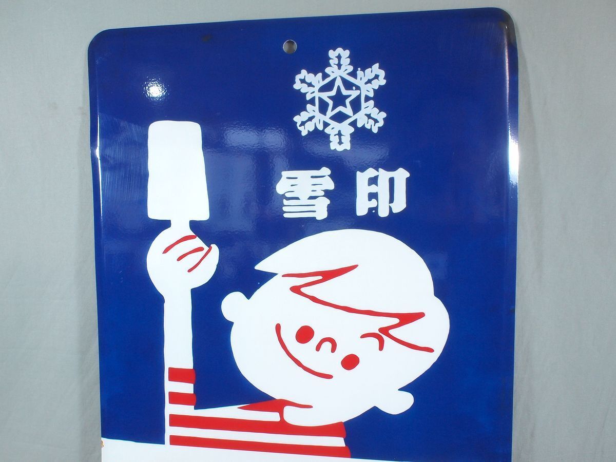 ラスト!□昭和レトロ ビンテージ ホーロー看板風 ブリキ看板 雪印アイススティック スノー坊や 商店。
