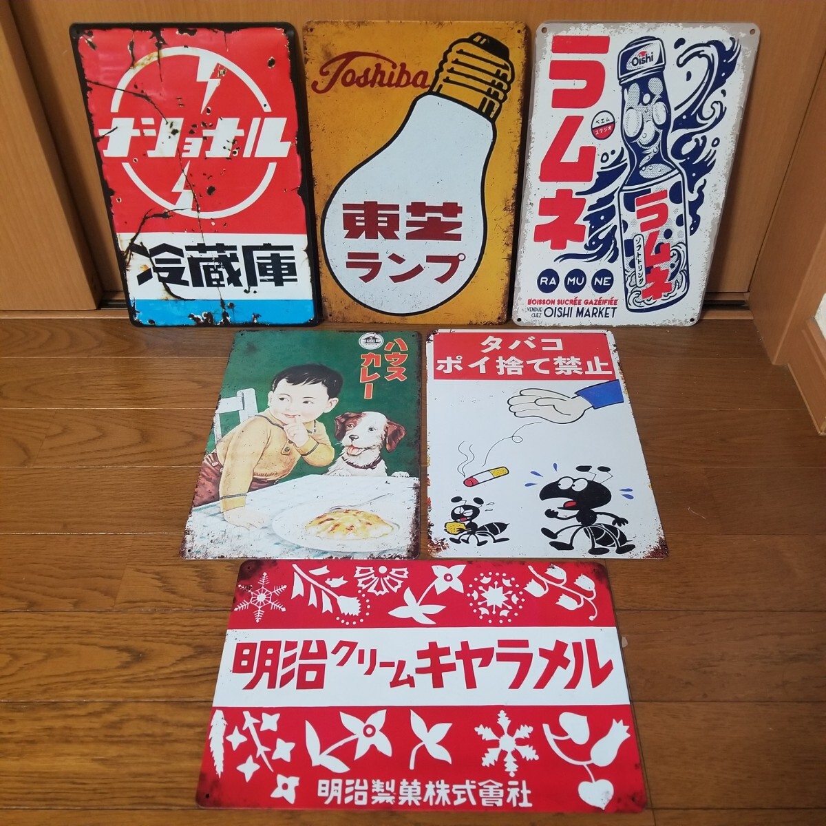 ホーロー看板 昭和 駄菓子屋 鬼びっくり 七味レトロ 昭和レトロ 当時物 アンティーク。