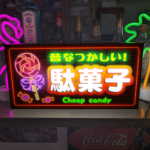 Lサイズ 文字変更無料 駄菓子 お菓子 おやつ おまけ 子供 くじ 商店 昭和レトロ ランプ 看板 雑貨 ライトBOXiichi日々の暮らしを心地よくするハンドメイドやアンティークのマーケットプレイス。