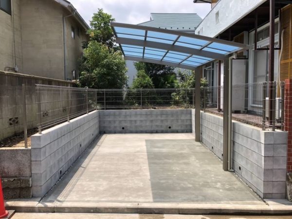 岐阜県多治見市 庭を解体して土留めブロックと駐車場の。
