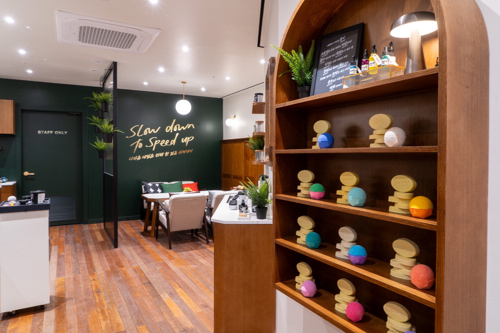 ラッシュのマッサージバーは、体に触れると体温によってエッセンシャルオイルが肌に自然に溶け込みます。香りを嗅いでみて、スパを利用する製品を自由に選んでください。" スターフィールド水原店に位置するラ- MK。