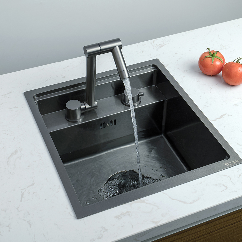 キッチンシンク激安通販丨ナノ流し台折畳み蛇口付丨目隠しフタ304ステンレス黒。