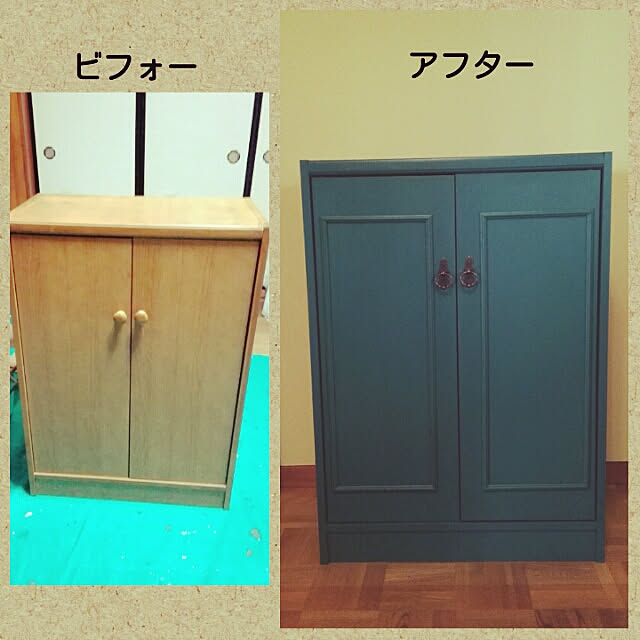 玄関DIY 賃貸の古い下駄箱をおしゃれにリメイク!扉改装編 - Chocori's DIY。