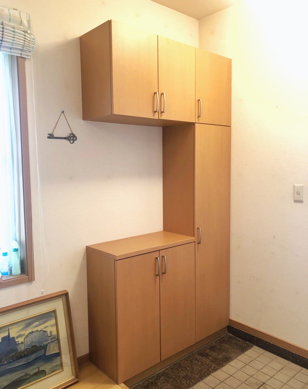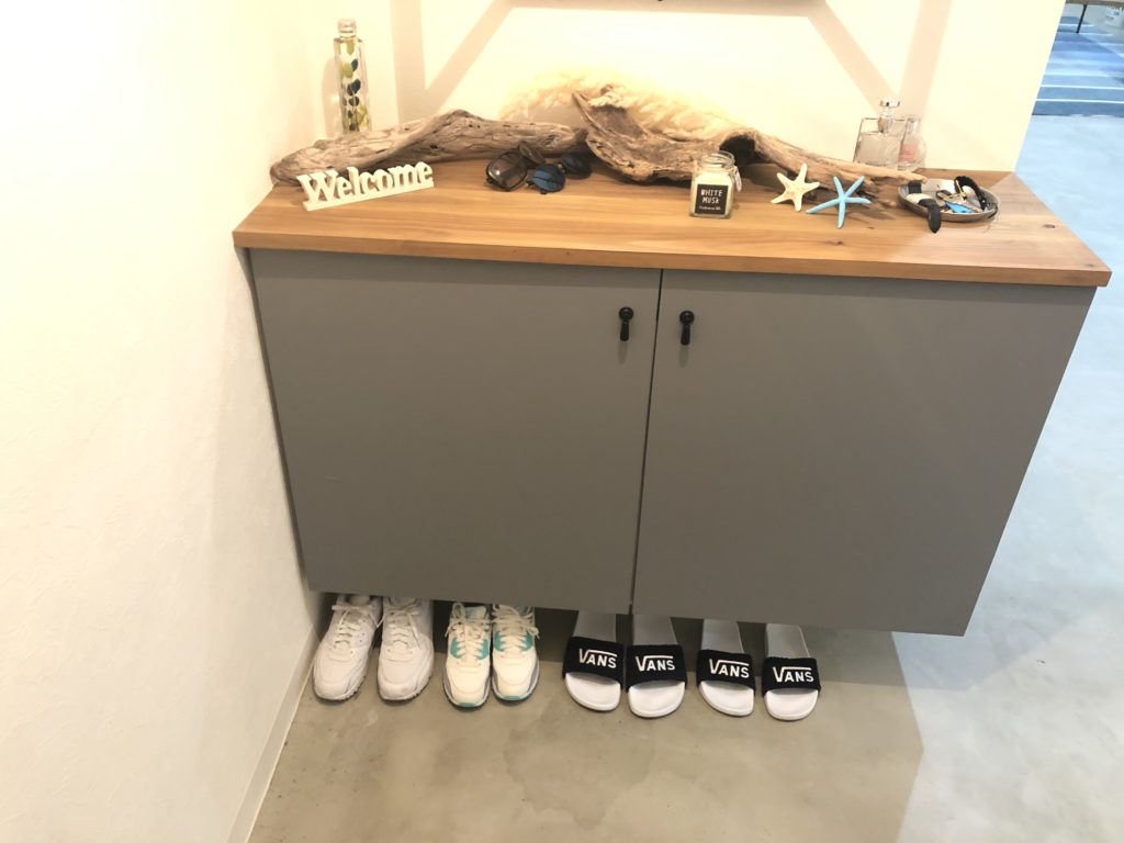 Seriaのリメイクシートで下駄箱のリメイク。古い下駄箱が新しいシューズボックスに。
