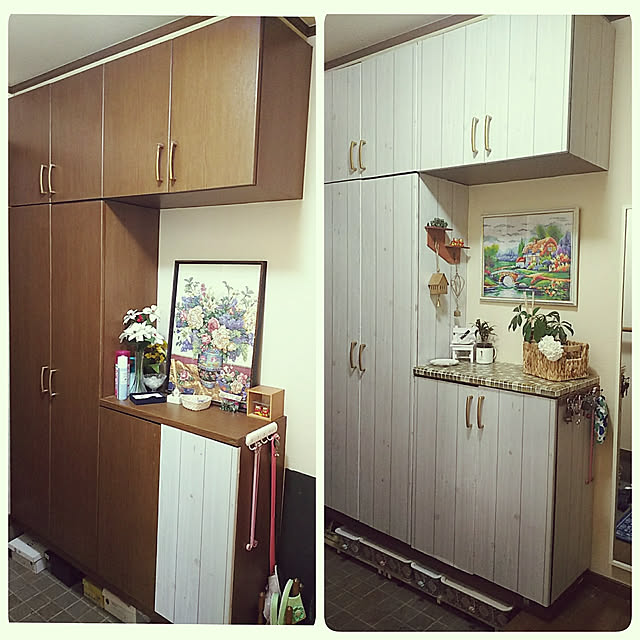 ダサい下駄箱をシャビー風塗装でオシャレで明るい玄関にリフォーム!ハンドメイドの作り方・アイデア暮らしニスタ。
