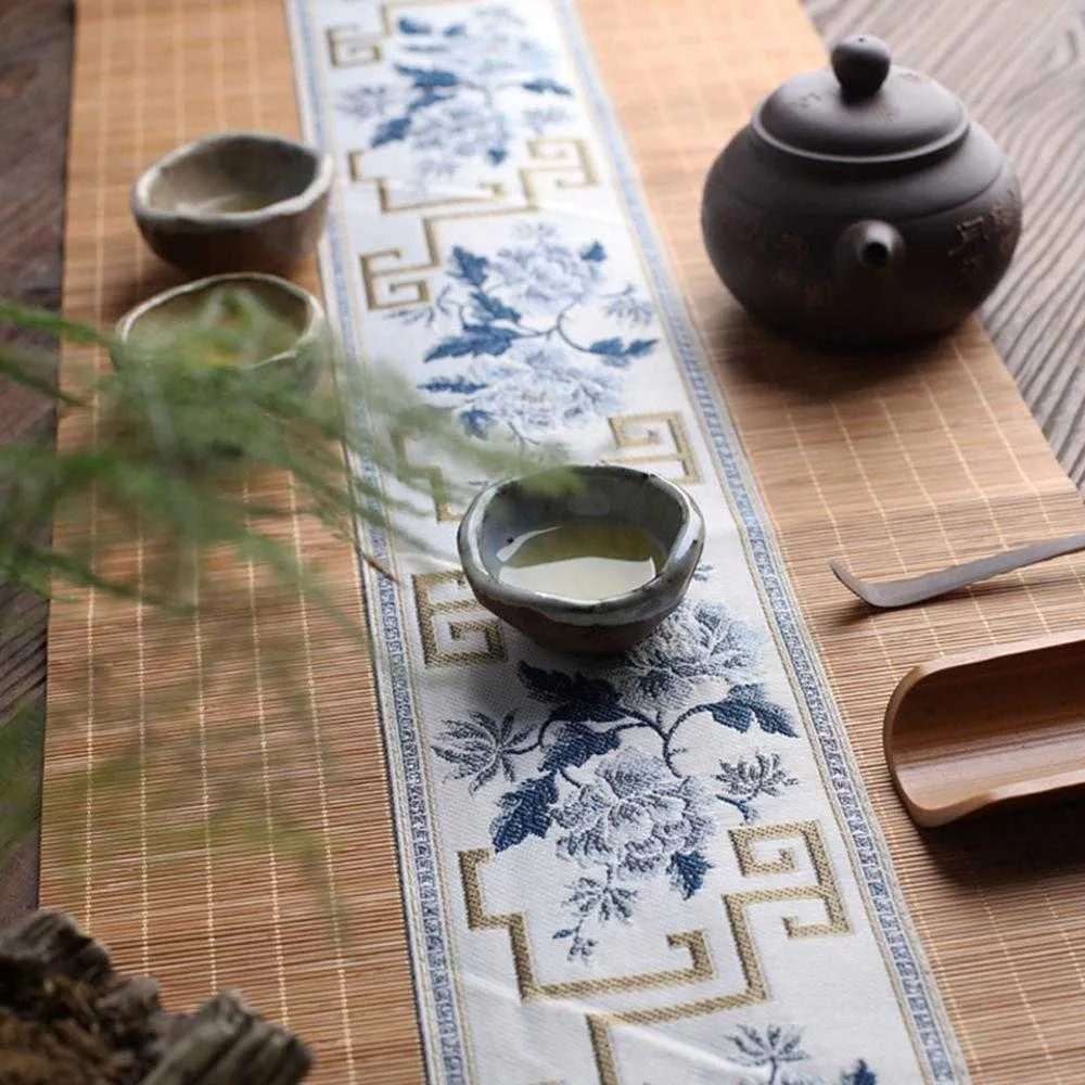 キャッスルピークブルーダイクロステーブルランナー禅茶道日本茶道、中国綿リネンテーブルクロス手作りクリスマスプレゼント - ショップ buruhomeランチョンマット - Pinkoi。
