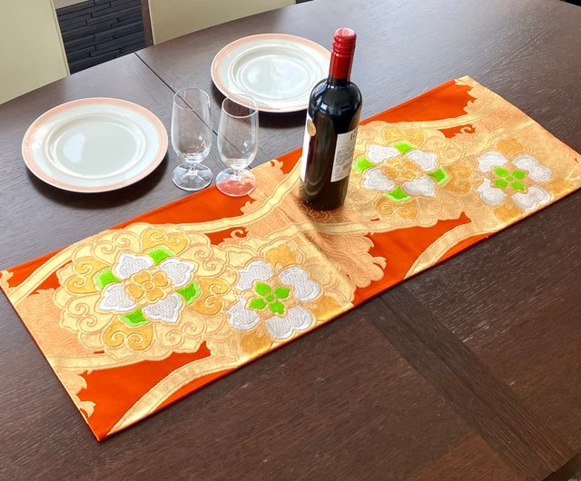 楽天市場 帯から手作りした テーブルランナー 100cm テーブル ランナー センター おしゃれ かわいい 可愛い 豪華 ゴージャス 和 和風 和柄レトロ 刺繍 和室 黄緑 ゴールド 帯 リメイク テーブルセンター 雑貨 インテリア 夏 和雑貨 プチギフト 日本土産 テーブル。